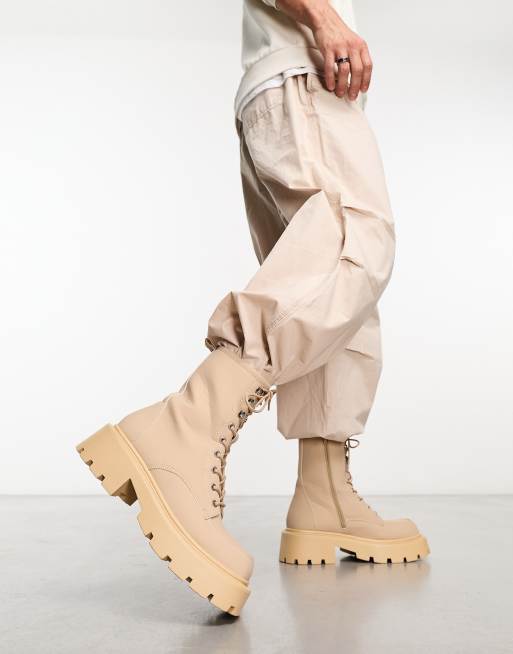 Truffle Collection - Sandfarvede chunky snørestøvler med firkantet tå