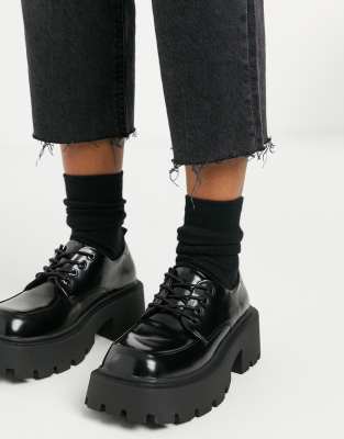 Truffle Collection - Sorte chunky sko med overdrevet sål og snørebånd