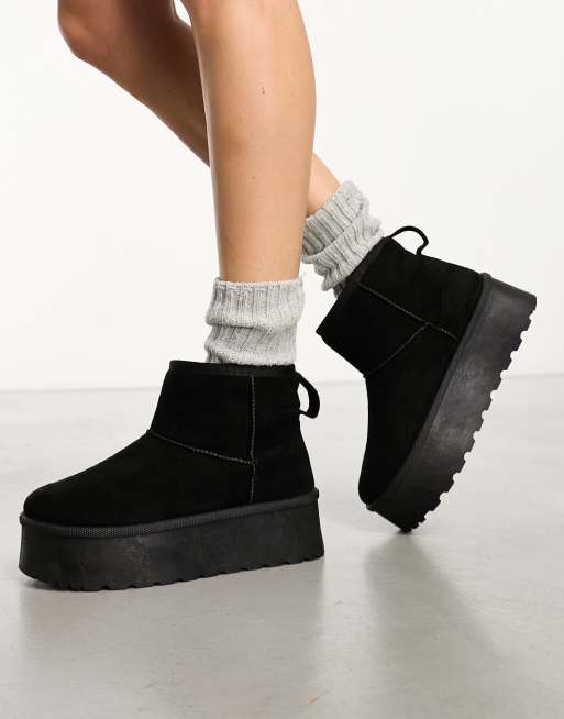 Truffle Collection - Sorte støvler med imiteret pelsfor