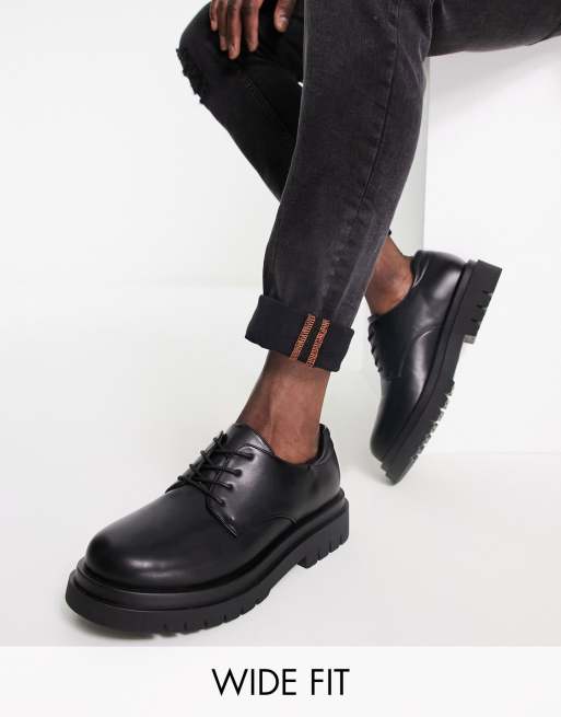 Truffle Collection - Wide Fit - Chunky snøresko i sort imiteret læder