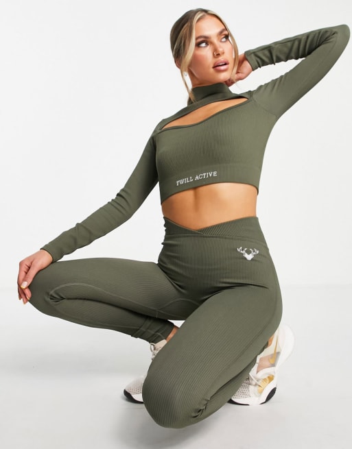 Twill Active - Ribstrikket, sømløst sæt i kakigrønt, genanvendt materiale