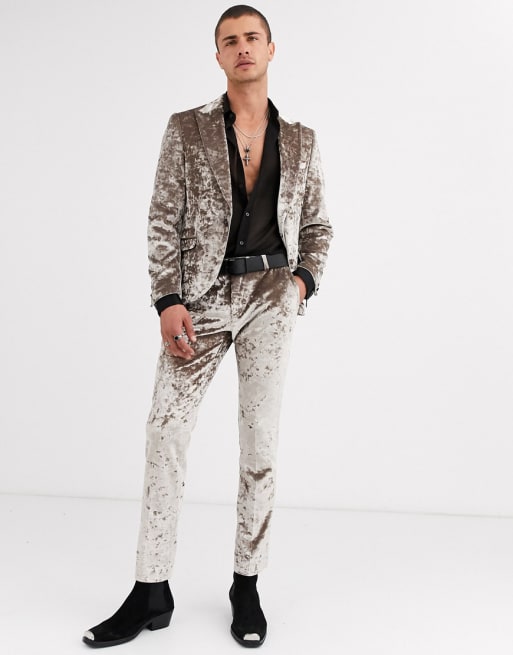 Twisted Tailor - Champagnefarvet super skinny habit i nervøst velour