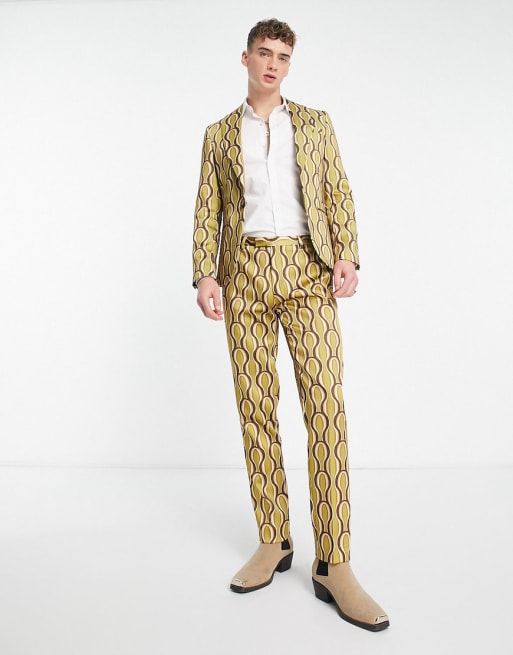 Twisted Tailor - Grønt 70'er-jakkesæt med hvirvelprint i satin