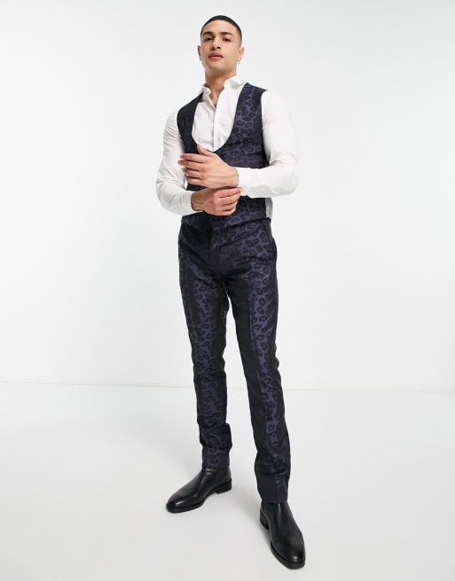 Twisted Tailor - Marineblåt jakkesæt i leopard-jacquarddesign