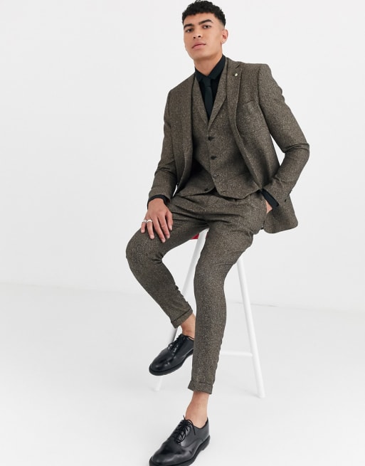 Twisted Tailor - Tall - Herringbone super skinny jakkesæt