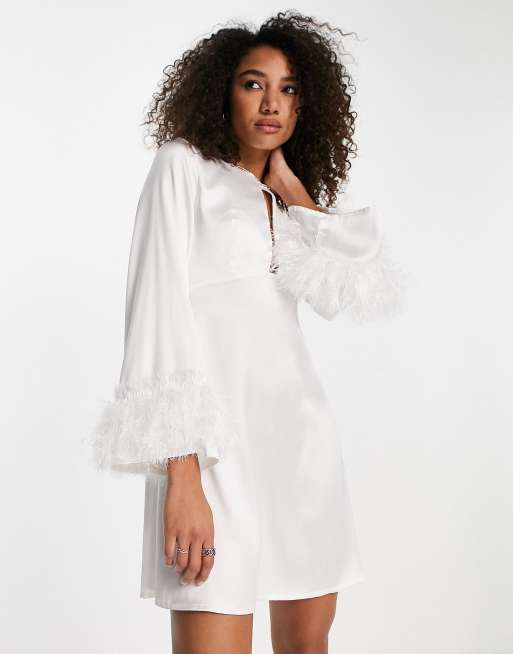 Twisted Wunder - Minikjole med manchetter i imiterede fjer og udskæring