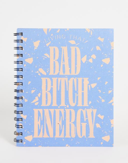 Typo - Blå A5 notesbog med spiralryg og "bad bitch"-slogan