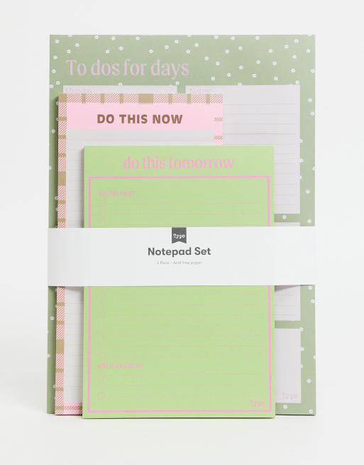 Typo - Multipakke med 3 x notesblokke med ugeplaner i grøn og pink