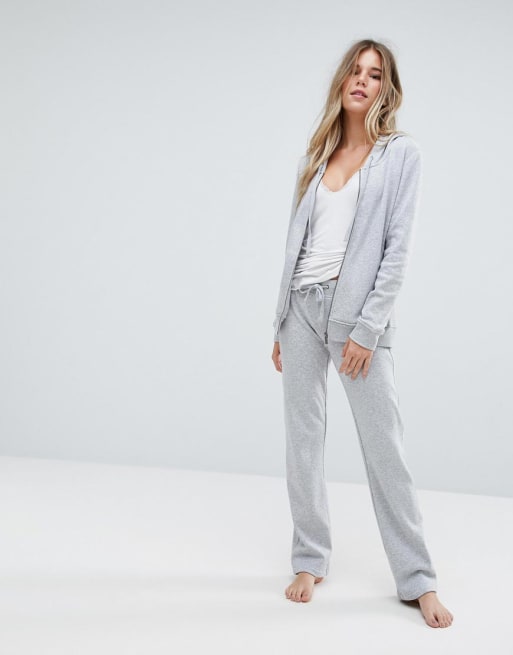 Grå fleece-hættetrøje i dobbeltlag med lynlås og joggingbukser fra Ugg (del af sæt)