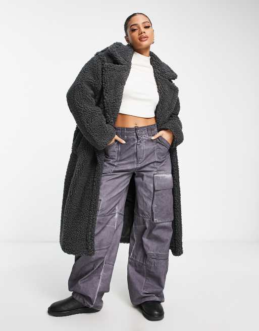UGG - Gertrude - Sort lang frakke i plysmateriale