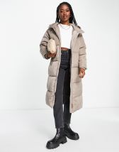 Urban Bliss - Gråbrun lang dynejakke med hætte