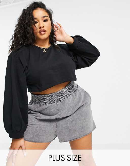 Urban Bliss Plus - Sort cropped sweatshirt med voluminøse ærmer - Del af sæt