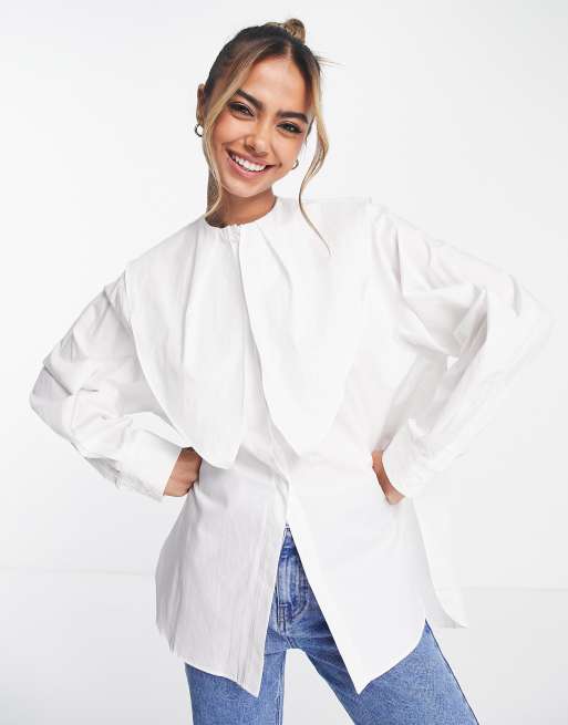 Urban Revivo - Bluse med oversized krave i hvid