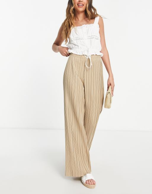 Urban Revivo - Plisserede, beige bukser med vide ben