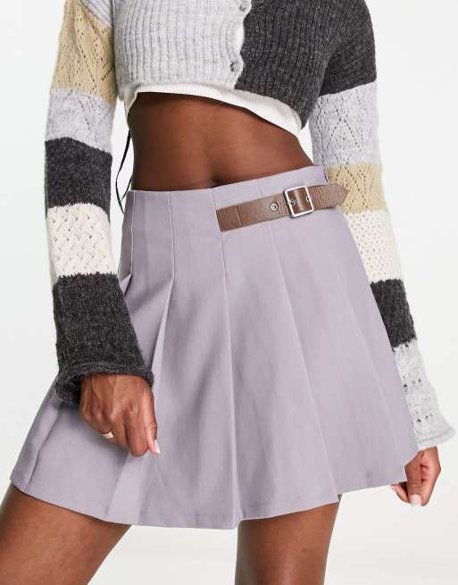 Urban Revivo - Plisseret mininederdel med spændedetalje i lysegrå