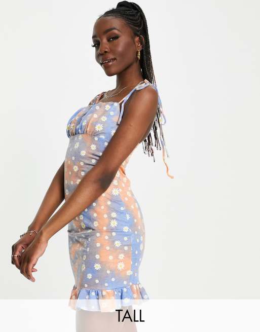 Urban Threads Tall - Minikjole med bindestropper, ombre-effekt og marguerit-print