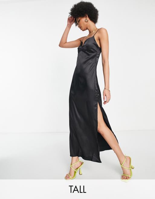 Urban Threads Tall - Sort cami-slip-kjole i satin