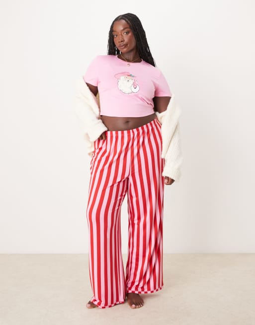 Urban Threads Curve - Lyserødt og rødt pyjamassæt med langærmet sweatshirt og joggingbukser med striber og cowboy-julemotiver