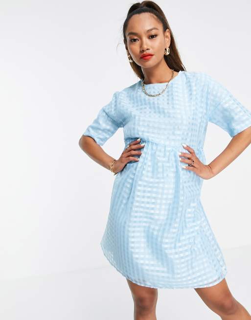 Urban Threads - Oversized smock-kjole i blå gingham-tern
