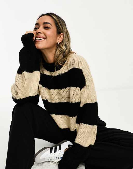Urban Threads - Striktrøje med marineblå/cremehvide striber