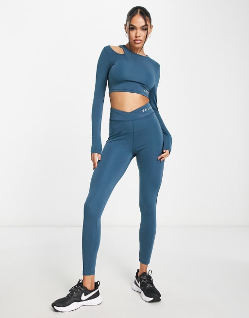 VAI21 - Blå asymmetrisk udskåret langærmet top - Del af sæt