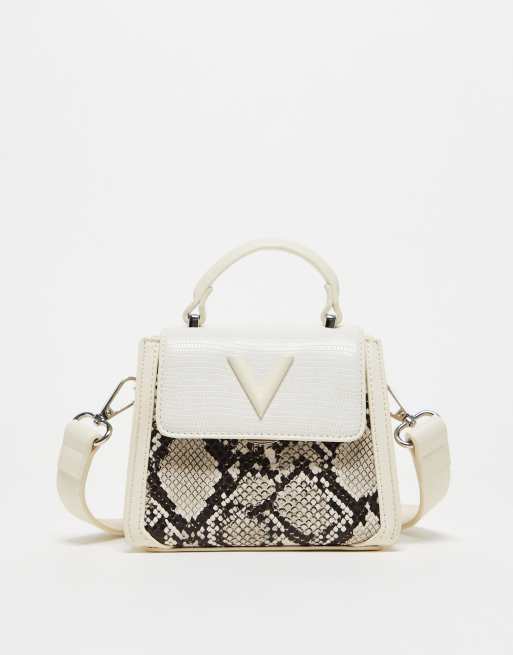 Valentino Bags - Peri - Hvid håndtaske med hank øverst og imiteret slangeprint