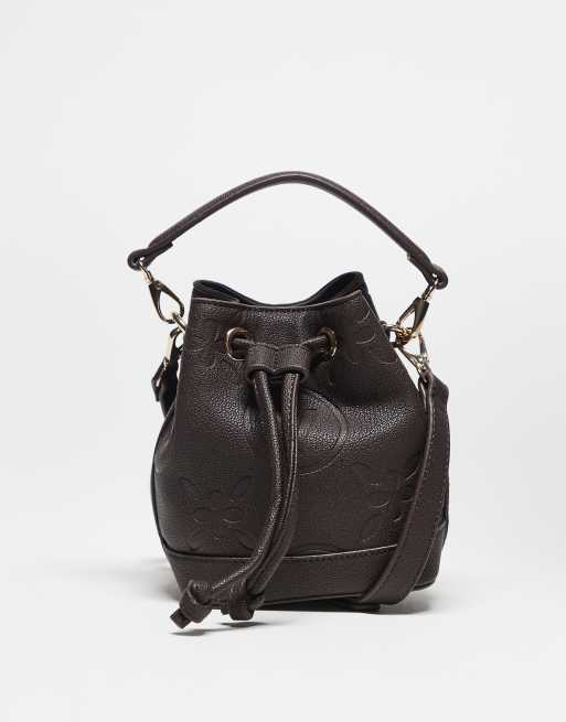 Valentino - Samba - Mørkebrun bucket-taske med tryk