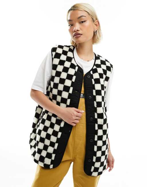 Vans - Mason - Sort, vendbar og skakternet vestjakke i imiteret lammeskind