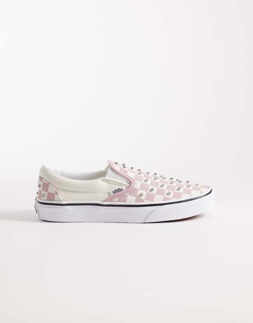 Vans - Slip on-sneakers i lyserødt skaktern med rhinstensdetaljer