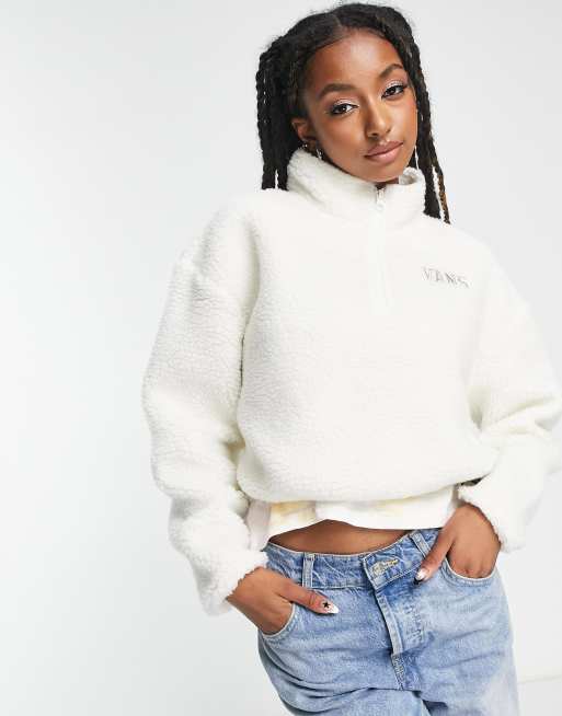 Vans - Warm-Up - Råhvid cropped fleecetrøje i plys med 1/2 lynlås