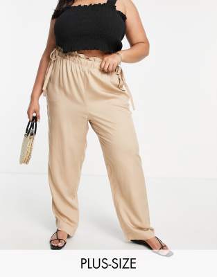 Vero Moda Curve - Cigaretbukser med paperbag-waist i kamelbrun