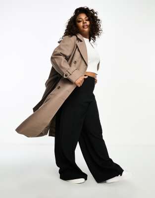 Vero Moda Curve - Elegant dobbeltradet trenchcoat i brun