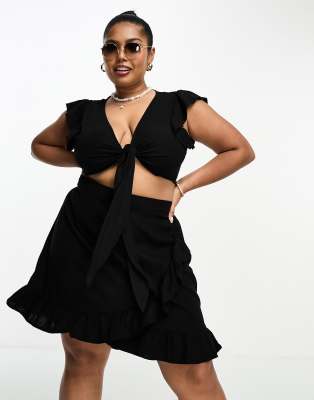 Vero Moda Curve - Sort slå om-mininederdel med flæser i hørblanding