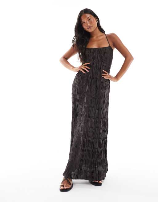 Vero Moda Petite - Chokoladebrun cami-maxikjole med plisseringer