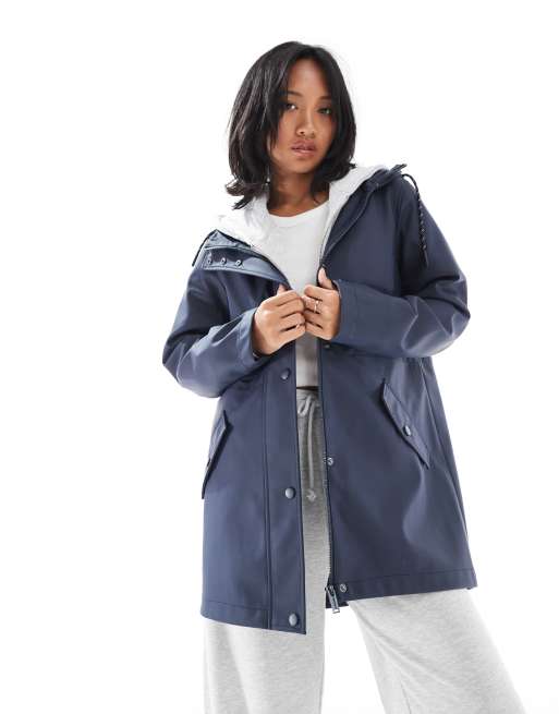 Vero Moda Petite - Marineblå regnfrakke med hætte