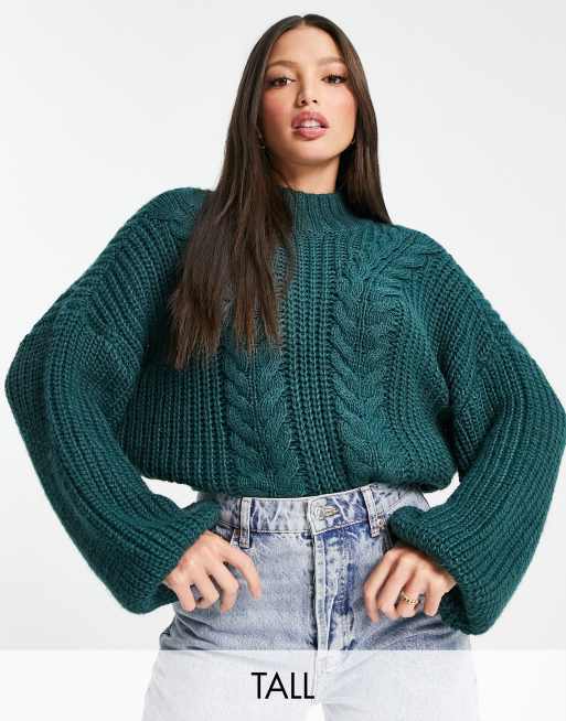 Vero Moda Tall - Grøn højhalset trøje med pufærmer