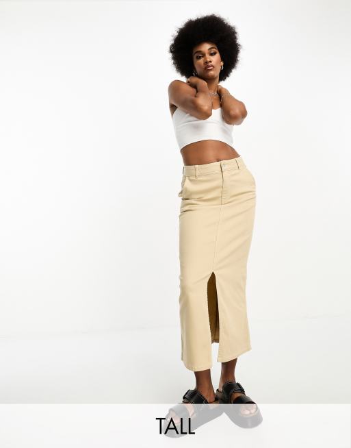 Vero Moda Tall - Lang cremefarvet denimnederdel
