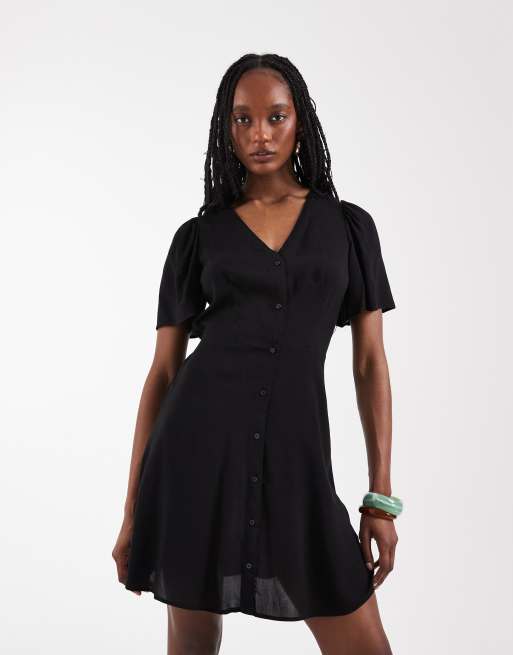 Vero Moda Tall - Sort skater-minikjole med gennemgående knapper