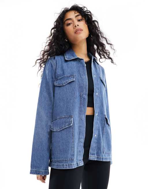Vero Moda - Aware - Denimskjortejakke i mellemblå vask med utility-design