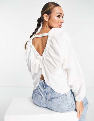 Vero Moda - Aware - Hvid bluse med rynker og bindebånd på ryggen