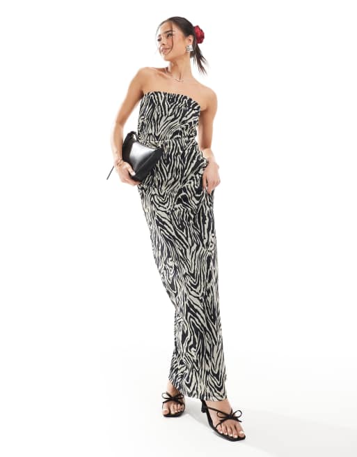 Vero Moda - Bandeau-maxikjole med abstrakt zebraprint i mesh