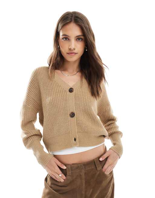 Vero Moda - Beige cardigan med gennemgående knapper i chunky ribstrik