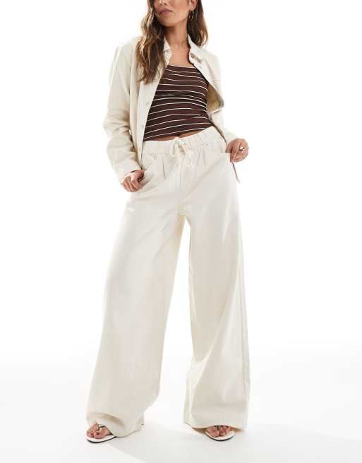 Vero Moda - Beige jeans med vide ben og bindebånd i taljen