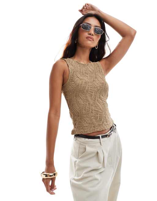 Vero Moda - Beige tanktop med 3D-tekstur