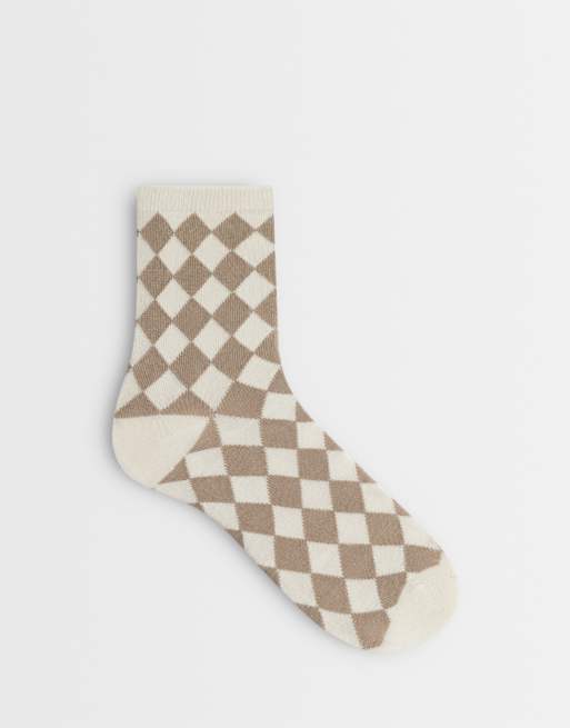 Vero Moda - Brune og cremehvide ankelsokker med tern