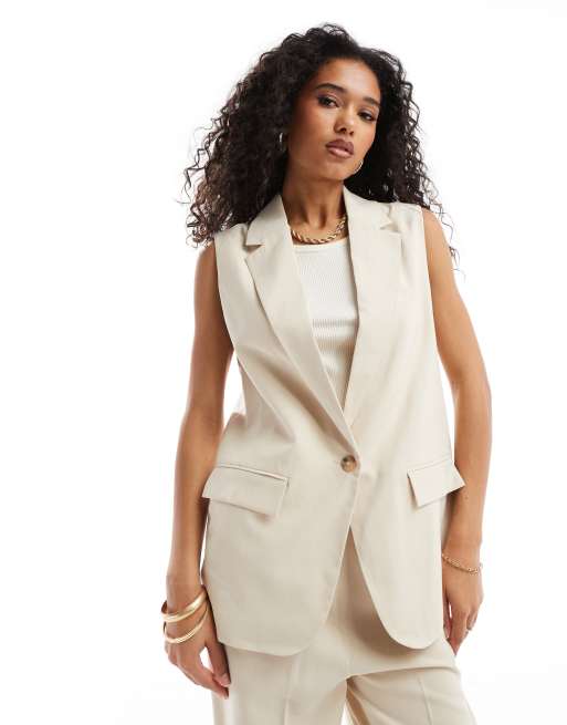 Vero Moda - Cremehvid longline-habitvest - Del af sæt