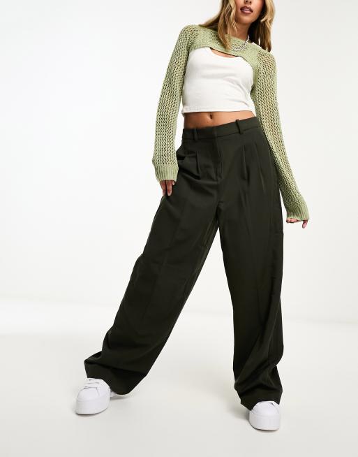 Vero Moda - Dad-bukser med vide ben og plisseringer foran i kakigrøn