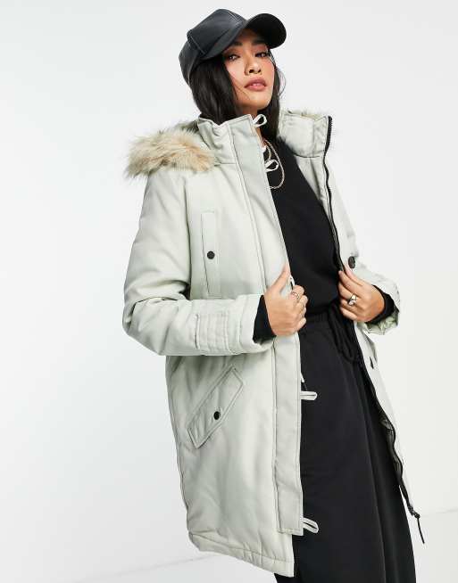 Vero Moda - Grå parka-frakke med hætte i imiteret pels