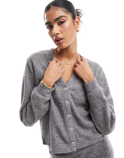 Vero Moda - Gråmeleret cardigan med knapper - Del af sæt