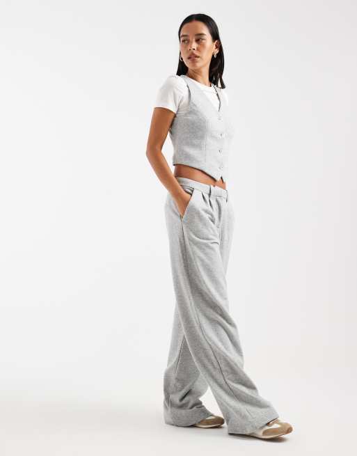 Vero Moda - Gråmeleret sæt med vest og joggingbukser med vide ben i jersey